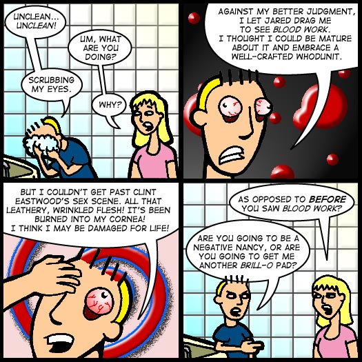 But I couldn't get past Clint Eastwood's sex scene! All that leathery, wrinkled flesh! It's been burned into my cornea! I think I may be damaged for life!