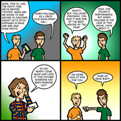 Just so everyone is on the same page, the third panel is supposed to be Robin Williams from his Mork & Mindy days. I only bring it up because I know some of the other readers probably can’t figure out why Robin Williams would have a mullet and wear suspenders.