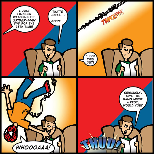 Part of me wishes I could have done this strip Monday to commemorate the DVD release of Spider-Man, but I was on such a role inserting Cami into the strips, why kill a good thing?