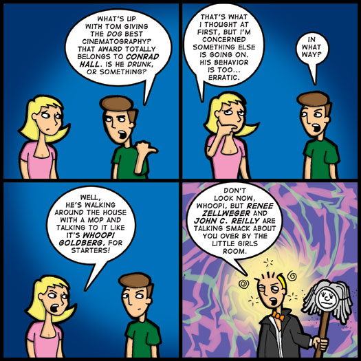 Don't look now, Whoopi. But Rene Zellweger and John C. Reily are talking smak about you over by the little girls room.