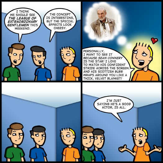Even though the man is closing in on three-quarters of a century, there is just something undeniably cool about Sean Connery. How cool is he? I’m willing to plunk down $8 dollars on what my better senses tell me will be the HORRIBLE League of Extraordinary Gentlemen just so I can listen to the man talk for 2 hours. Think people. There is finite amount of time left for us to enjoy this privlege.