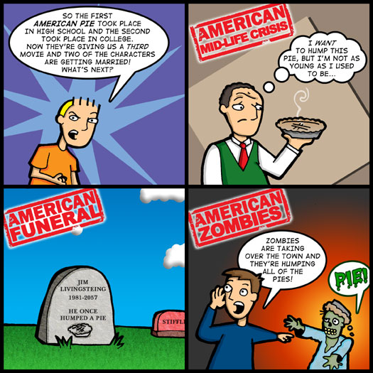 I got a lot of interesting feedback from Wednesday’s strip. There were several supportive e-mails telling me I nailed what high school is really about. I even got an e-mail from a guy who went to school with American Pie screenwriter Adam Hertz. He said apparently a lot of stuff in the first movie was true (excluding the pie) and that he hated high school, too.