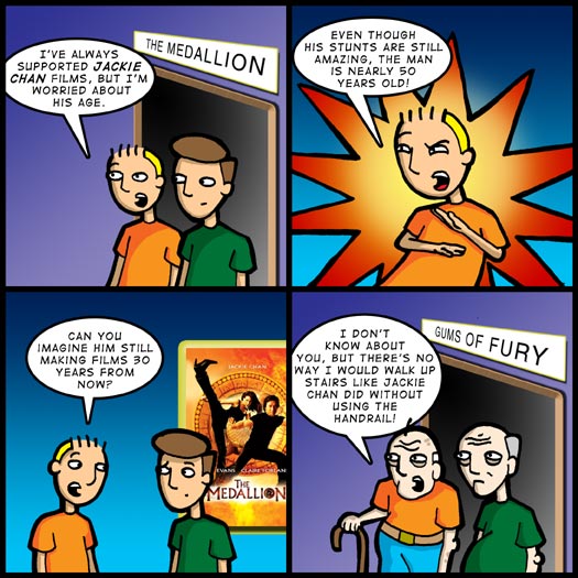 I just think it’s one of those cruel twists of fate that, at half a century, Jackie Chan has really become well-known in America… just as things are starting to slide down the other end of the bell curve.