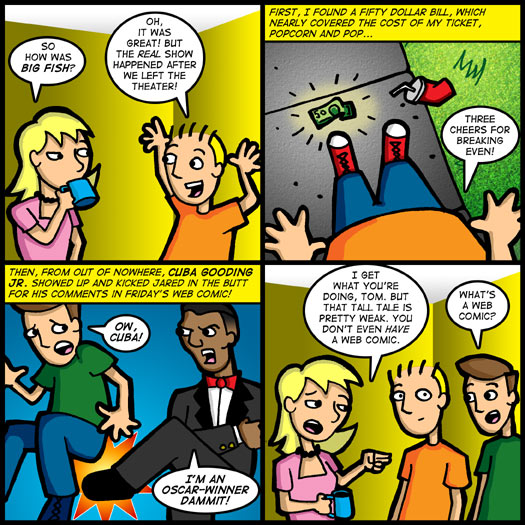 Then, from out of nowhere, Cuba Gooding Jr. showed up and kicked Jared in the butt for his comments in Friday's web comic!