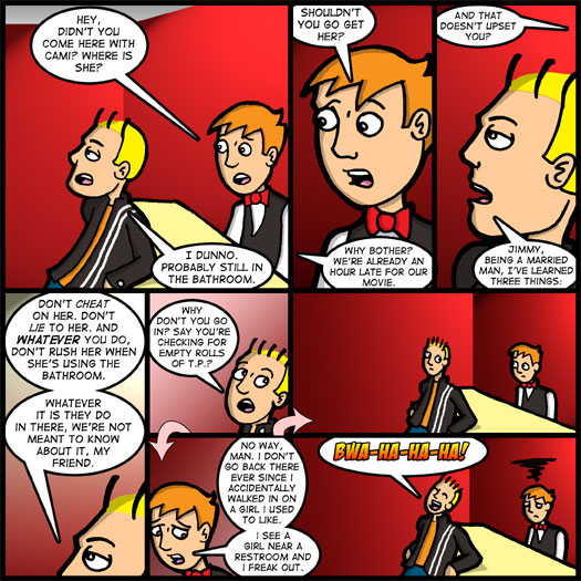 Why don’t you go in? Say you’re checking for empty rolls of T.P.?