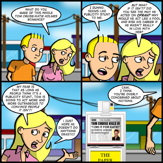 My fear is that as long as people think it's a publicity stunt, Tom is going to act more and more outrageous to convince people it isn't!