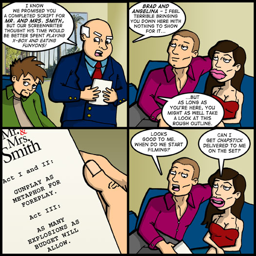 Did Angelina Jolie end up getting that ChapStick she requested? I bet if you vote for Theater Hopper at Webcomics List, you’ll find out!