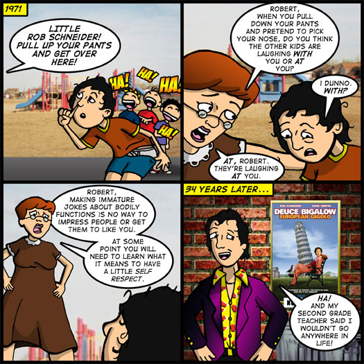 Rob Schneider: Ha! And my second grade teacher said I wouldn’t go anywhere in life!
