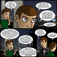 Hopefully without giving too much away, this storyline is a means to resolving that situation. I tried to set it up with an air of finality – thus, Jared bringing the gun into play. But I didn’t want to escalate it to the point that he would actually murder Ben Affleck. And that’s what today’s comic was about. A twisted sense of reasoning that would lead Jared to believe that the only way to let Affleck off the hook is to act his way out of an impossible task and somehow proving that his talent was beyond reproach.