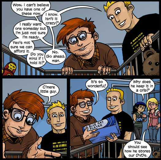 Thanks also to Tycho for his link. Not for what it means for the site, but so I could share my joy not only with my readers but with Penny Arcade’s readers as well. What a privilege. Not everyone can say they can share the news of their son’s birth around the globe to tens of thousands of people. It sounds like a cool story to tell him when he’s older. “They celebrated your birth around the planet, little guy.”