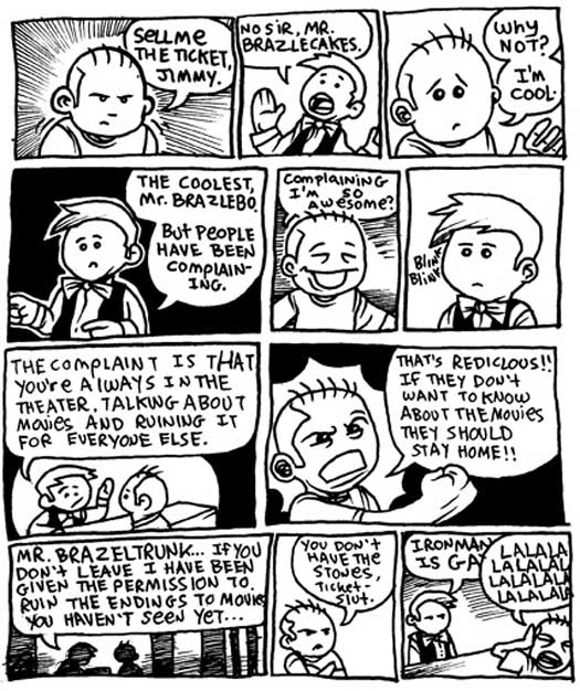 The complaint is that you’re always in the theater. Talking about movies and ruining it for everybody else.