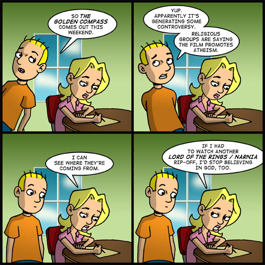 If I had to watch another Lord of the Rings / Narnia rip-off, I’d stop believing in God, too.
