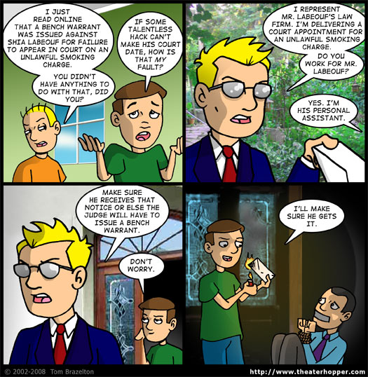 I represent Mr. LaBeouf's law firm. I'm delivering a court appointment for an unlawful smoking charge.
