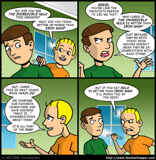 ...but if you say Hulk is better than Iron Man, I'll punch you in the neck!