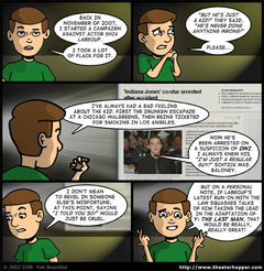 Now, this morning, The Chicago Tribune is reporting that LaBeouf was arrested in Chicago for trespassing after he refused to leave a Walgreens drug store! It doesn’t get any better than this! (Thanks to Josh Anderson for forwarding me the link).