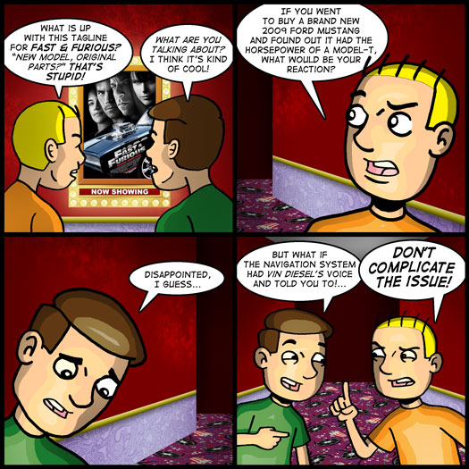 Fast & Furious, Vin Diesel, tagline, New Model, Original Parts, Ford Mustang, Model-T, horsepower, navigation system
