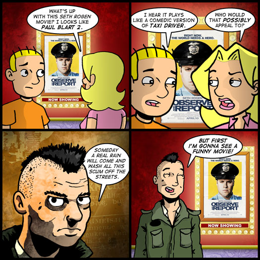 Back to the topic at hand, Observe and Report comes out this weekend and it sounds like people are on guard for this one. Paul Blart 2 this is not.