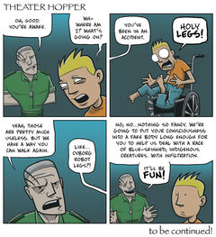 When I started this who guest strip bru-ha-ha, Brandon J. Carr (formerly of The Kenmore and Weird Adventures of Unemployment) told me that inspiration had struck and he had an idea for a three-comic arc that parodied Avatar. He asked if that was okay. How could I say no? I have a diapers to change! A baby to burp! I haven’t slept in…! -SNNNNRRRZZKKKK! – Huh? What?! I’m awake!!