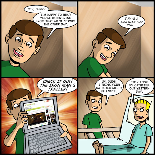 Maybe it’s the lack of sleep, but this comic was WAY funnier in my head. I’m trying to play the fourth panel straight. Like peeing your pants at the sight of the Iron Man 2 trailer is a perfectly acceptable and normal reaction.