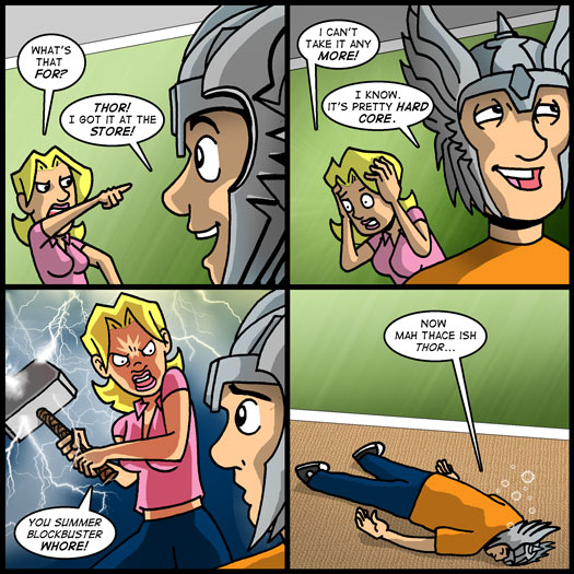 I’m sorry about this. I don’t know what I’m doing here. I feel like I’m dumping my problems in your lap. But if feels good to write this, to get it off of my mind. Writing it down will go a long way to help me from continuing to beat myself up about it. I guess it doesn’t leave a lot of room to talk about Thor, but I’m not too upset about it. Are you?