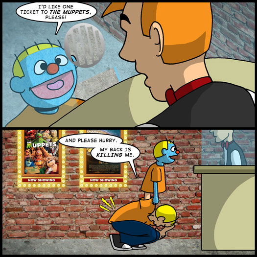 I don’t know what it is about The Muppets that has generated so much excitement in me. But I knew as soon as the first of November turned the corner that I had more than I couple of ideas comic-wise to approach the movie with. He’s the follow-up to last week’s strip with likely more Muppet goodness to come.
