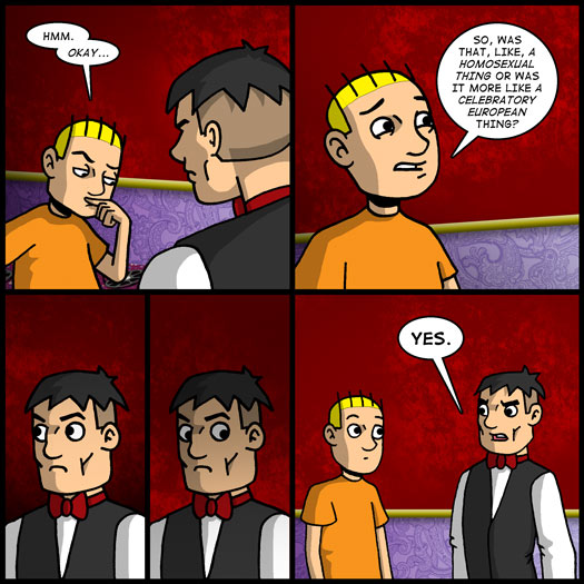 Granted, his answer to Tom’s question is slightly cagey. But it’s not exactly false, either. Don’t worry. It’s all going to get sorted out in the next comic or two. But I’m not going to make a big deal about it. Because, frankly, it shouldn’t be a big deal.