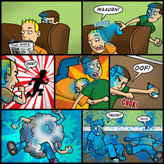 This week has been a weird amalgam for me. I haven’t quite shed the trappings of a story line, but have succeeded in omitting most of the dialogue. It’s been a fun little exercise in writing visual gags.