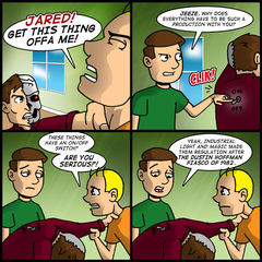 Is it a cop-out to give the Benbot an On/Off switch? A little bit, yeah. But let’s be truthful: there’s no way I was going to turn this into a 15-strip story arc about a time-displaced Benbot and his dire warnings.