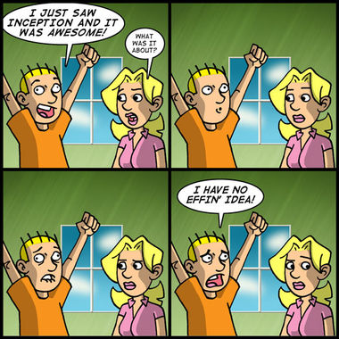Inception has both visceral and intellectual thrills. I think you can figure out that comic-Tom is probably responding to the former rather than the latter. But for real-life Tom, I found myself thoroughly engrossed by all of the film’s many facets.