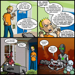 For those of you detecting the subtle commentary in today’s strip, congratulations. We’ve just reached the pinnacle of this arc. The whole reason behind introducing the talking DVD player was to get to this point.