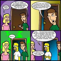 Ignore the science of today’s strip. I don’t know if jaundice causes your hair to fall out or eyes to bulge, but I do know it will color you skin. It’s a visual joke, so just roll with the punches.