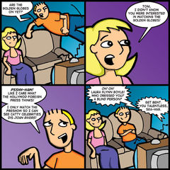 Cami’s take on Scarlett Johansson (while not as violent) is pretty fairly represented in today’s comic. I dunno. She just doesn’t like her. Thinks she has attitude. Doesn’t work well with others. In a way, I can see it. Part of me knows that there won’t be much left for her once she grows out of her ingenue phase. She seems cold. Distant. A little W.A.S.P.y… Is it just me?