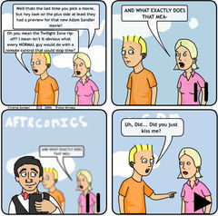 His most recent foray back into web comics is Silent Kimbly which, by evidence of today’s comic, is more adorable than words. I think within the web comics "scene," it’s really easy to get caught up in what’s trendy or dubious. But then comes a comic like Silent Kimbly that silently excutes its purpose with extreme precision. It entertains. It makes you smile. It’s not pretentious about itself. It honestly aims to please. And that is *SO* refreshing.