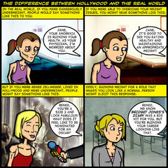 I find Renee Zellweger’s “daring transformation” particularly egregious. The woman is essentially being rewarded for being rail thin, then being heralded as brave by putting on pounds to portray a regular-sized woman in the Bridget Jones movies. This in face of the fact that Zellweger was actually paid A BONUS for each pound she put on to achieve the appropriate look in the Bridget Jones sequel.