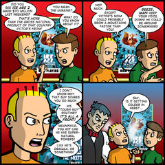 I’m gonna come right out and say it. I love to use Victor in these comics. He’s an utter joy to write for. Not so much because he’s exceptionally witty, but because everything we’ve come to learn about him has been information delivered by the other characters. So, by extension, anything he’s capable of seems amplified to it’s worst conclusion by the audience because he has yet to be defined. Beyond his introduction, he hasn’t had one word of dialogue. If I could take that back, I would. He much more imposing as a mute. I get a kick setting him up against comic Tom.