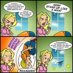 Not much to say about today’s comic other than I plan on taking this “heavy helmet” gag and driving it straight into the ground. I’m starting to enjoy the challenge of finding new ways to tell the same joke.