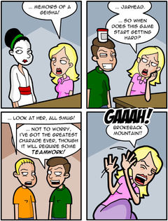 In any case, Cami and I won’t be seeing either film this weekend. Steve Martin’s Shopgirl (which I dissected in this strip) and which was given a soft release in select markets last week finally comes to Des Moines on Friday. Both Cami and I were big fans of Martin’ s original novella. In fact, I also own his book "The Pleasure of My Company" and his collected essays – "Pure Drivel". Great stuff. I might actually have to read Pure Drivel again. It’s been a while since I looked at it.