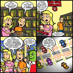 Today’s comic is no joke. Cami and I went grocery shopping Sunday afternoon and Shrek’s goofy mug was on no less than five of the products we bought. “Shrek Toilet Paper?” C’mon, now that’s just nasty!