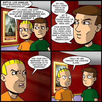 I’m not exactly what kind of point I’m trying to make with my observation about Battle: Los Angeles. After doing a quick visual inventory, I think a lot of people came to the same conclusions about it being an Independence Day / Black Hawk Down / District 9 mash-up. For most people, that doesn’t matter.