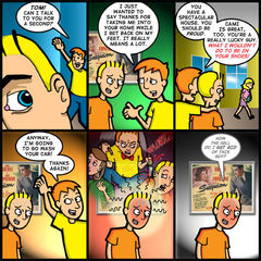 Here I had you thinking that Jared was the one going mental, but it turns out it was Jimmy! Well, in Tom’s dream at least. But maybe Jared got to him? Put some thoughts in his head? It’s certainly a possibility. Maybe that question will be answered in the mini trade paperback I’m putting together that collects this arc. Yea… I’m thinking there might be a bonus comic inserted between this comic and Wednesday’s comic that might address that very issue…