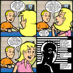 At any rate, I hope you’ve enjoyed these last two strips. I know I’ve had a lot of fun drawing them. As you can probably tell, I’m a big Frank Miller fan and a big Sin City fan. I actually used to practice by looking at some of the Sin City stuff and drawing replicas. So this has been a little nostalgia treat for me.