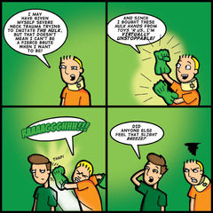 I was particularly emboldened to go ahead with today’s strip after reading comments left by Absath over at Ctrl+Alt+Del. An unfortunately uneducated reader sent him an e-mail calling Reeve selfish for trying to find a cure for his paralysis only after suffering the affliction himself…