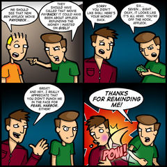 By the way, in case you missed it, there was an extra comic yesterday. It was a really humdinger, too. In an effort to boost our position at buzzComix, I’m doing a WHOLE WEEK of strips. So that means there will be an extra comic Thursday, too. Don’t forget to come back then and check it out.
