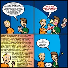 I’m sure to most of you, today’s comic is an ugly swipe at the American Pie movies. But I can attest that everything said in the 3rd panel rings very true to my ears. This is my honest-to-God interpretation of these movies, and I’m sticking by it.