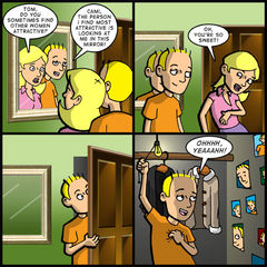 Coming up with the punchline was kind of weird. Since the comic is a autobiographical exaggeration, I kind of resisted the idea of casting myself as vain or being more concerned with myself than Cami. I didn’t want to give you guys the wrong idea about out relationship because the joke is kind of at her expense. Truthfuly, I would rather stare at Cami for 100 hours that catch a passing glimpse of myself in the reflection of a storefront window.