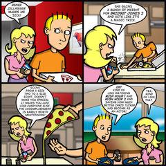 You’ll have to excuse me for going light on the backgrounds of today’s comic, but I have a good reason. Cami and I spent most of the afternoon putting the Spoiler t-shirts into envelopes and preparing them to mail today. In fact, there were so many shirts, one could say it was a little overwhelming!