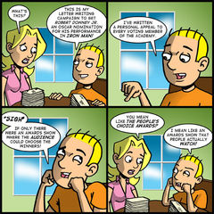 This strip is a continuation of Tom’s insistence of a Best Actor nod for Robert Downey Jr.’s performance in Iron Man from Wednesday’s comic. I didn’t really envision more than one strip when I wrote the first one until my friend Joe asked me if there was going to be a longer storyline.