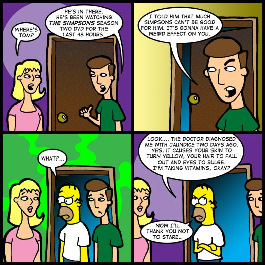 I told him that much Simpsons can't be good for him. It's going to have a weird effect on you.