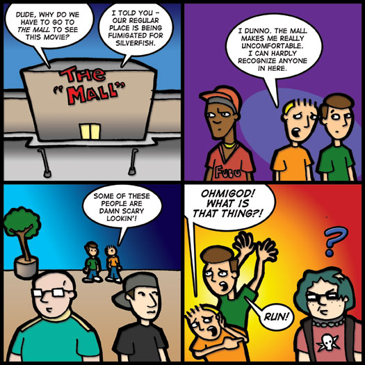 Big thanks to the awesome crew of Mall Monkeys for letting me have a little fun with their characters. I don’t think there isn’t a soul on Earth that doesn’t already know about this comic, but if you don’t, you need to visit them now. It deftly blends the bizarre, the obscene and the weird – The makings of greatness. And they’re good guys to boot.