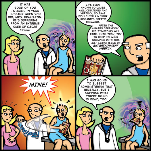 So here it is. The last strip before we head into the triple digits. I’d like to think that it was all part of some grand design that I was able to synchronize the coming of my 100th strip with the aftermath of the largest night in Hollywood, but just like everything else, it’d dumb luck.